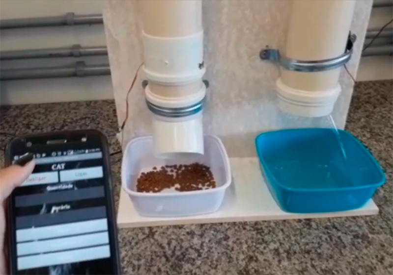 Sistema automatizado para alimentação de animais de estimação.