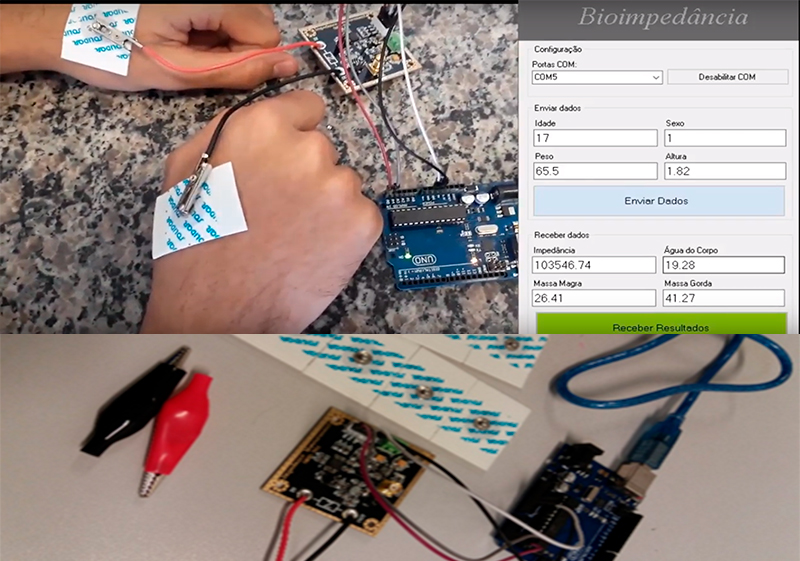 Dispositivo para determinar a composição corporal utilizando bioimpedância.