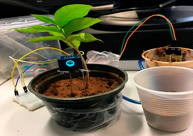 Monitoramento de umidade do solo com feedback visual.